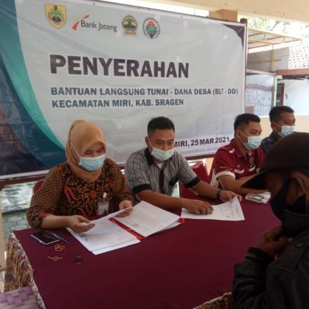 Anggaran BLT-Dana Desa ini sebenarnya telah masuk ke rekening kas desa pada tanggal 16 Maret 2021 sebesar Rp.13.500.000,00 (Tiga Belas Juta Lima Ratus Ribu Rupiah) untuk 45 KK RTM, sehingga pada tanggal 25 Maret Telah di Cairkan BLT DD sebesar Rp.13.500.000,00 (Tiga Belas Juta Lima Ratus Ribu Rupiah) untuk 45 KPM di Aula Kecamatan Miri Pukul 10:00 WIB.