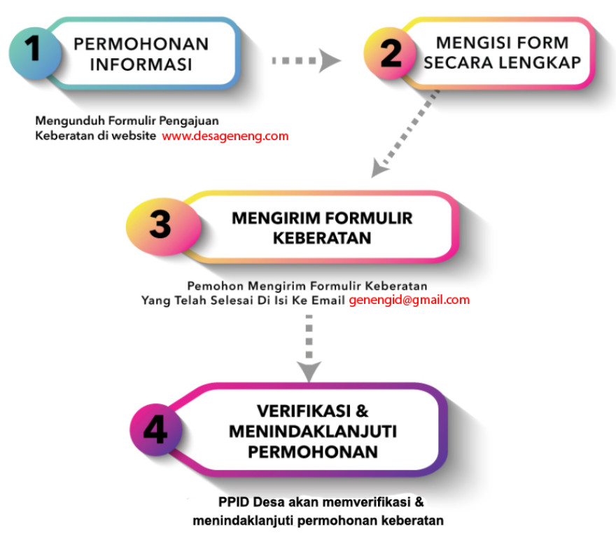 - Mengirim Formulir Pengajuan Keberatan yang telah diisi lengkap ke email genengid@gmail.com