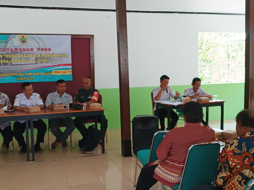 Berkaitan dengan pelaksanaan kegiatan musyawarah Desa, di Desa Geneng, Kecamatan Miri, Kabupaten Sragen Provinsi Jawa Tengah dalam rangka Penyusunan RKP Desa tahun 2024, maka pada hari ini: