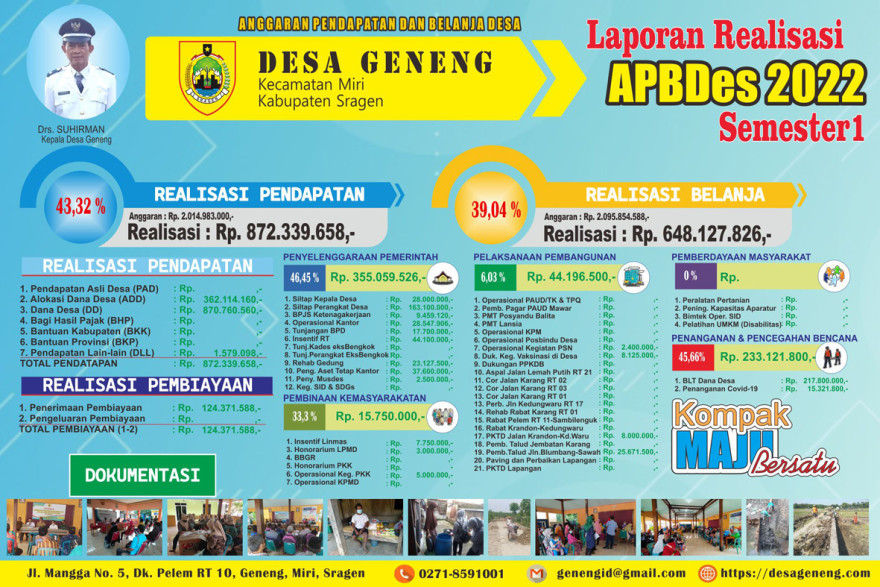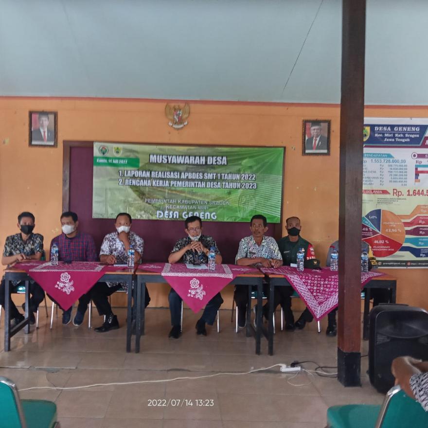 Laporan Realisasi Pelaksanaan Anggaran Pendapatan dan Belanja Desa Semester I Pemerintah Desa Geneng Kecamatan Miri Kabupaten Sragen Provinsi Jawa Tengah Tahun Anggaran 2022.