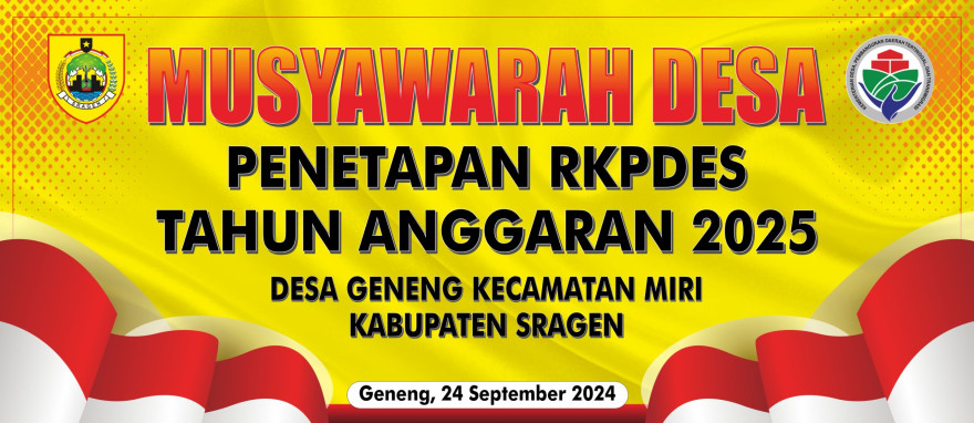 Berkaitan dengan pelaksanaan kegiatan musyawarah Desa, di Desa Geneng, Kecamatan Miri, Kabupaten Sragen Provinsi Jawa Tengah dalam rangka Penyusunan RKP Desa tahun 2025, maka pada hari ini: